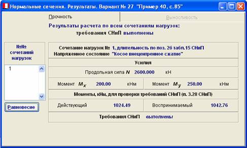 сжатие. Представление результатов, получаемое в программе «ОМ СНиП Железобетон», показано на рисунке.